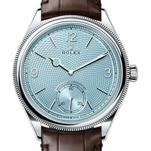 Introducing the Rolex 1908, a masterpiece that embodies the pinnacle of luxury and craftsmanship. This exquisite timepiece features a 39mm Platinum case with a polished bezel, exuding timeless elegance. The Ice blue dial is adorned with black hour markers and hands, providing a striking contrast for enhanced readability. Powered by the Rolex Caliber 7140, it offers a remarkable power reserve of approximately 66 hours and is water-resistant up to 50 meters. The watch is complemented by a sophisticated black alligator leather strap with an 18K white gold folding Crownclasp. Offered in unworn condition, this exceptional watch comes as a full set with the original Rolex box, booklets, and a Rolex warranty card dated 2025. Secure this luxurious timepiece today and experience the epitome of Swiss horological excellence. Perfect for any collection, the Rolex 1908 blends heritage with modern sophistication, making it an ideal companion for any occasion.