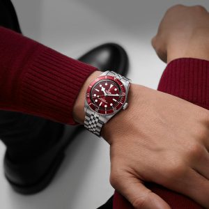Unworn watch Tudor Black Bay 58, Ref# M7939A1AORU-0001. A clear and precise diver’s watch harmoniously combines iconic design details with high-performance technology. The 39 mm Stainless Steel case with a polished and satin finish gives them a solid look. While maintaining the core design elements of TUDOR, this new version of the Black Bay 58 stands out with its shiny burgundy dial and matching bezel. The dial is decorated with luminescent large applied silver-tone hour markers: round and rectangular at 3, 6 and 9 o’clock, as well as a luminous large triangle at 12 o’clock. On the outer perimeter of the dial, there is a graceful silver-toned minute-second scale. Spectacular completion of an amazing picture – silver-toned arrows with a luminous fill. The hour and minute’s hands as well as a second time zone hand feature the distinctive angular tips known to collectors as the “Snowflake”. The elegant silver-colored central seconds hand with a luminous ring near the hand and a small counterweight ring looks harmonious.  Complementing all this charm is a Stainless Steel screw-down crown, with the TUDOR rose in relief. The dial closed by a domed Scratch-resistant Sapphire Crystal. The watch mechanism is sewn up by a solid case back. Particularly striking is the unidirectional stainless steel bezel, which features a burgundy anodised aluminium insert. The model is equipped with a manufacture Tudor self-winding mechanical movement bidirectional rotor system, Calibre MT5400-U (COSC and METAS certified), contains 27 jewels and has an approximate power reserve approximately of 65 hours. This incredibly beautiful timepiece, a masterpiece of the manufacturer, is presented on 5-link stainless steel bracelet with polished and satin finishes with TUDOR “T-fit” clasp. Water resistant up to 200m/660ft (20 ATM).